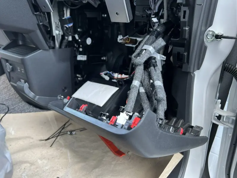 スイッチ取り付けのため、運転席下パネルを取り外します。