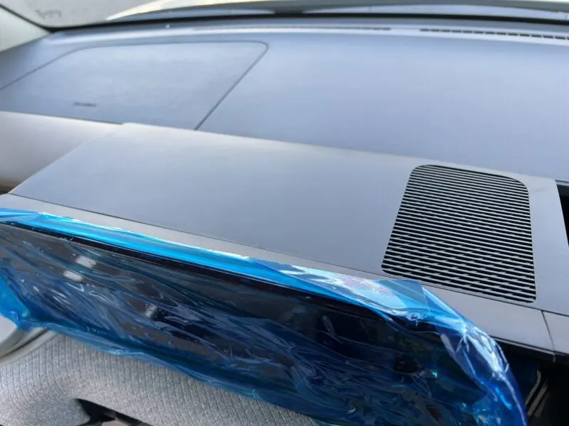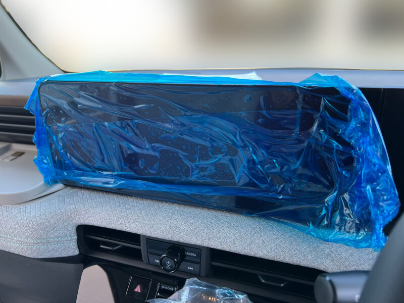 ナビの液晶部分や、ピアノブラック調のパネル部分を、保護テープで保護します。