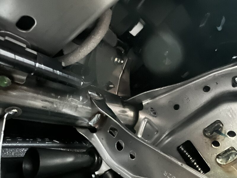 グローブボックスを外した部分から、ナビを見上げると、ナビ金具を固定しているナットが見えます。(写真中央)